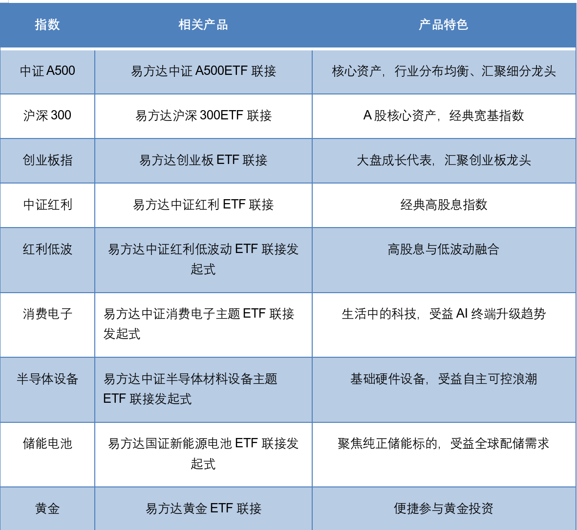基金有风险,投资须谨慎。相关指数及行业表现不预示未来,不作为投资收益保证,亦不作为投资建议;以上内容由公开消息整理而来,仅供参考,不代表易方达基金研究观点。不作为对上述所涉行业相关股票的推荐,也不作为对投资者的投资建议。本材料不构成公司任何业务的宣传推介材料、投资建议或保证,也不作为任何法律文件,本基金管理人承诺以诚实信用、勤勉尽责的原则管理和运用基金资产,但不保证基金一定盈利,也不保证最低收益,基金过往业绩和获奖情况不预示未来表现。请投资者关注投资基金可能遇到的特有风险等,详见招募说明书的“风险揭示”部分。请投资者关注产品的特有风险,在投资基金前应认真阅读《基金合同》和《招募说明书》等法律文件,全面认识基金产品的风险收益特征,在了解产品情况及听取销售机构适当性意见的基础上,根据自身风险承受能力、投资期限和投资目标,对基金投资做出独立决策,选择合适的基金产品,完整版风险提示函详阅易方达官网。