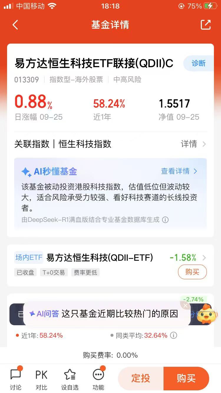 $易方达恒生科技ETF联接(QDII)C(OTCFUND|013309)$