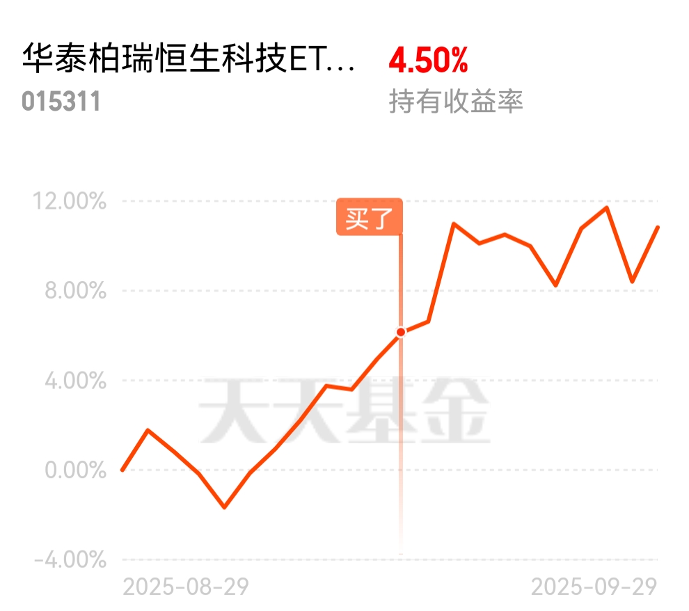 看了眼持仓,华泰恒科今天2.22%的涨幅很提气!近一年36%的总收益,证明好标的要拿得住。$华泰柏瑞恒生科技ETF联接(QDII)C$