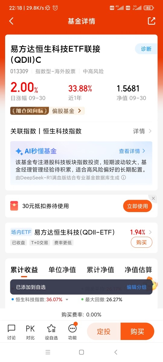 #分享国庆见闻,晒收益,瓜分好礼!# #热点话茬# 我是科技派,我的国庆旅游目的地是香港。在香港的街头真切触摸到了科技与未来的脉搏,漫步维港两岸,金融科技相映成趣;穿行中环,能感受到全球资本与创新技术在这里交汇融合,这恰如我持有的易方达成长进取混合与易方达恒生科技这两只基金的投资脉络。作为坚定的“科技派”,我特别关注香港国际都市中科技应用的深度与广度:从商场里智能便捷的服务机器人,到市民普遍使用的电子支付系统,再到地铁里人手一部最新电子设备的年轻人,这些鲜活的场景,让我对基金重仓的AI算力、半导体、消费电子等科技赛道,以及恒生科技指数成分股中的互联网龙头企业的成长潜力,有了更直观的信心。$易方达成长进取混合C$