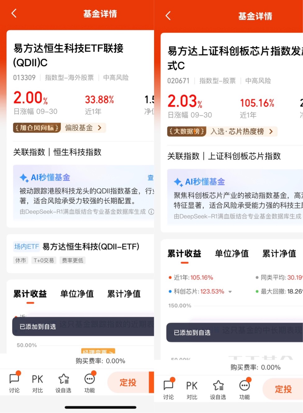 备战2025收官,只有1个季度了,依然对恒生科技情有独钟,如易方达恒生科技ETF联接基金,它所持有的个股包括小米、腾讯控股、阿里巴巴、美团、京东集团等,虽然我持有的是易方达互联网ETF和易方达创业板,但应该还会择机买入易方达恒生科技。@易方达基金
