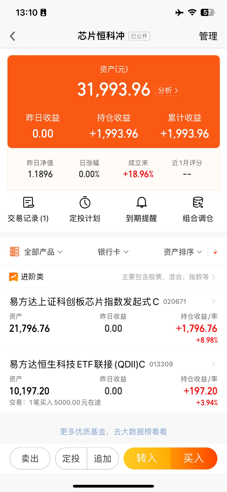 今日加仓5000元易方达恒生科技(013309),$易方达恒生科技ETF联接(QDII)C$ 今天恒生科技虽然有所上涨,但涨幅相比A股并不高,加上假期外资没有故意拉涨,今天加仓不算追高,还是算低位布局。9月恒生科技涨幅大幅超过A股,10月有望延续强势表现,按照A股这个涨法,恒生科技补涨需求强烈。外资对中国股市的关注度持续上升,并且已在真金白银增加持仓,恒科是承接外资的第一站。此外,互联网大厂三季报有望持续超预期,龙头依然是阿里腾讯,中芯国际涨幅也很猛,美团有望实现困境反转,整体看恒科的重仓成分股上涨潜力巨大,这是我重仓布局的动力。易方达恒科我今年会一直拿着,涨幅还远远没有到头。