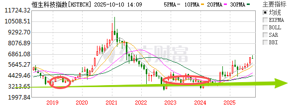 2、还是继续看走势,恒生科技指数在2023-2024年一直在调整筑底,和2019-2020构成双底,参考2019-2020筑底之后的行情,2025-2026这波行情的应该不会小。目前的位置也不过是从底部反弹以来的一个小调整而已。只有底部够扎实,行情才能走的更远,更稳。