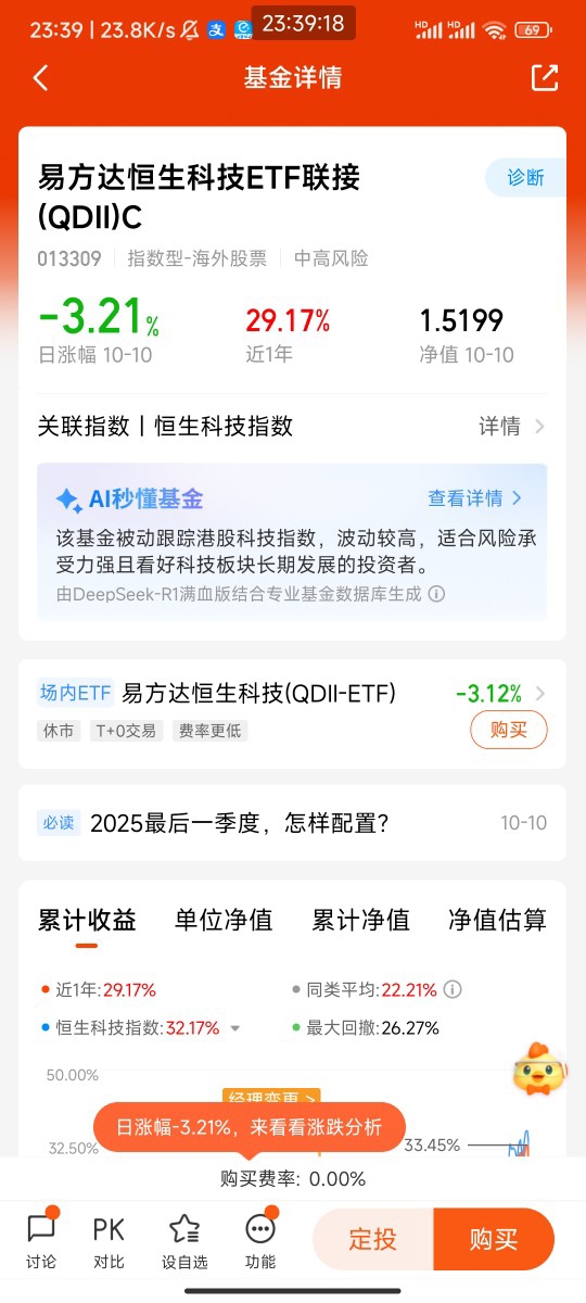 #热点话茬# #分享国庆见闻,晒收益,瓜分好礼!# 我是科技成长派,国庆中秋长假休息,主要在家门口的公园绿地游玩,大屏幕上的机器人舞蹈,鲜花盛开,商场机器人应用广泛!参加朋友聚会,共叙友情!闲暇之余考虑理财!看好$易方达恒生科技ETF联接(QDII)C$ ,近期恒生科技领跑港股,主要是芯片,CPO,机器人上涨,且龙头权重更高,弹性更强!看好恒生科技指数,目前估值低,港股上市科技公司基本面良好!重点关注港股科技板块,追求超额收益,通过基金买港股,获取收益,即使回调,是当下不错的选择!@易方达基金