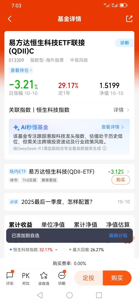 #分享国庆见闻,晒收益,瓜分好礼!# #热点话茬# 我是科技派,国庆去旅游是很多人的首选,我与很多朋友相聚去了北京的长城,都说登不上长城非好汉,这次我们都是好汉,科技互联网行业发展的一个“主推器”是人工智能,而目前的人工智能的发展速度超过我们的想象,比如从大语言的模型来看,目前最新的人工智能模式要比之前的快8倍,其处理数据的能力更是提升了650%左右,在答疑解惑方面,不管是记忆类还是推理类的问题,或是开放式的发散性的问题,它都可以给我们很详细,很专业的,甚至是供我们选择的多个答案。因此我选择了易方达恒生科技ETF联接(QDII)C(013309),因为易方达基金在投资领域相当专业。@易方达基金