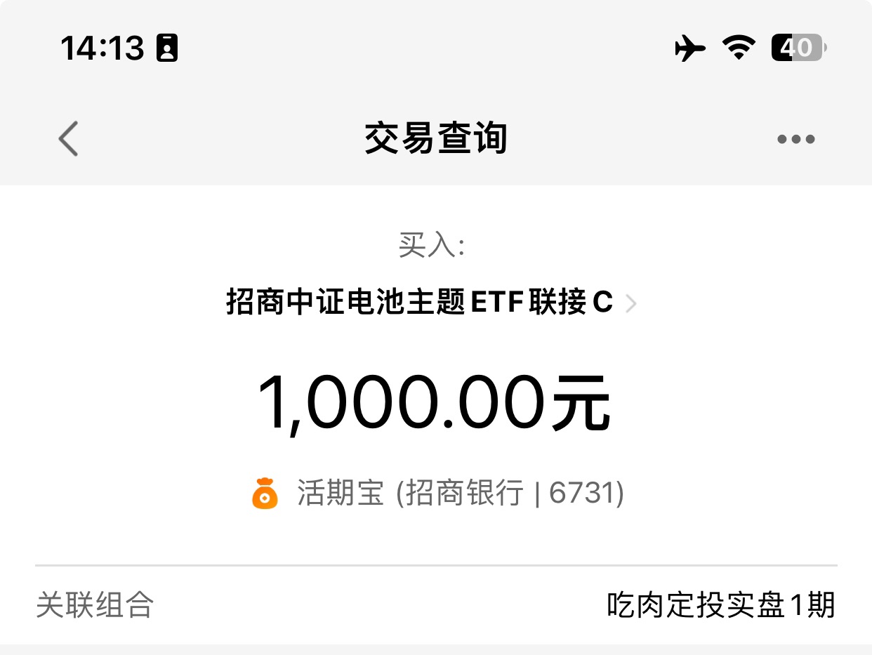 今天加仓1000元招商中证电池主题ETF联接基金(016020),$招商中证电池主题ETF联接C$ 两天回调了10%,节前刚建了个底仓,这个位置可以逐步舒服加仓了。