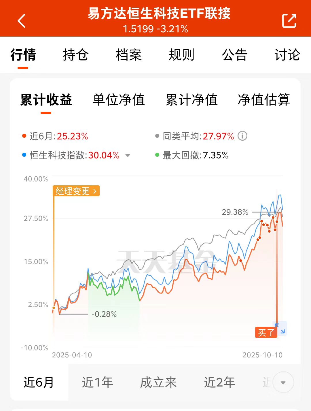 今天股市行情震荡,跌幅不断缩小,就要翻红啦,10月美联储仍可能降息,外资可能进一步回流港股,因为港股相比A股美股来看,估值还处于低洼地,更有优势,逢低加仓我选$易方达恒生科技ETF联接(QDII)C(OTCFUND|013309)$
