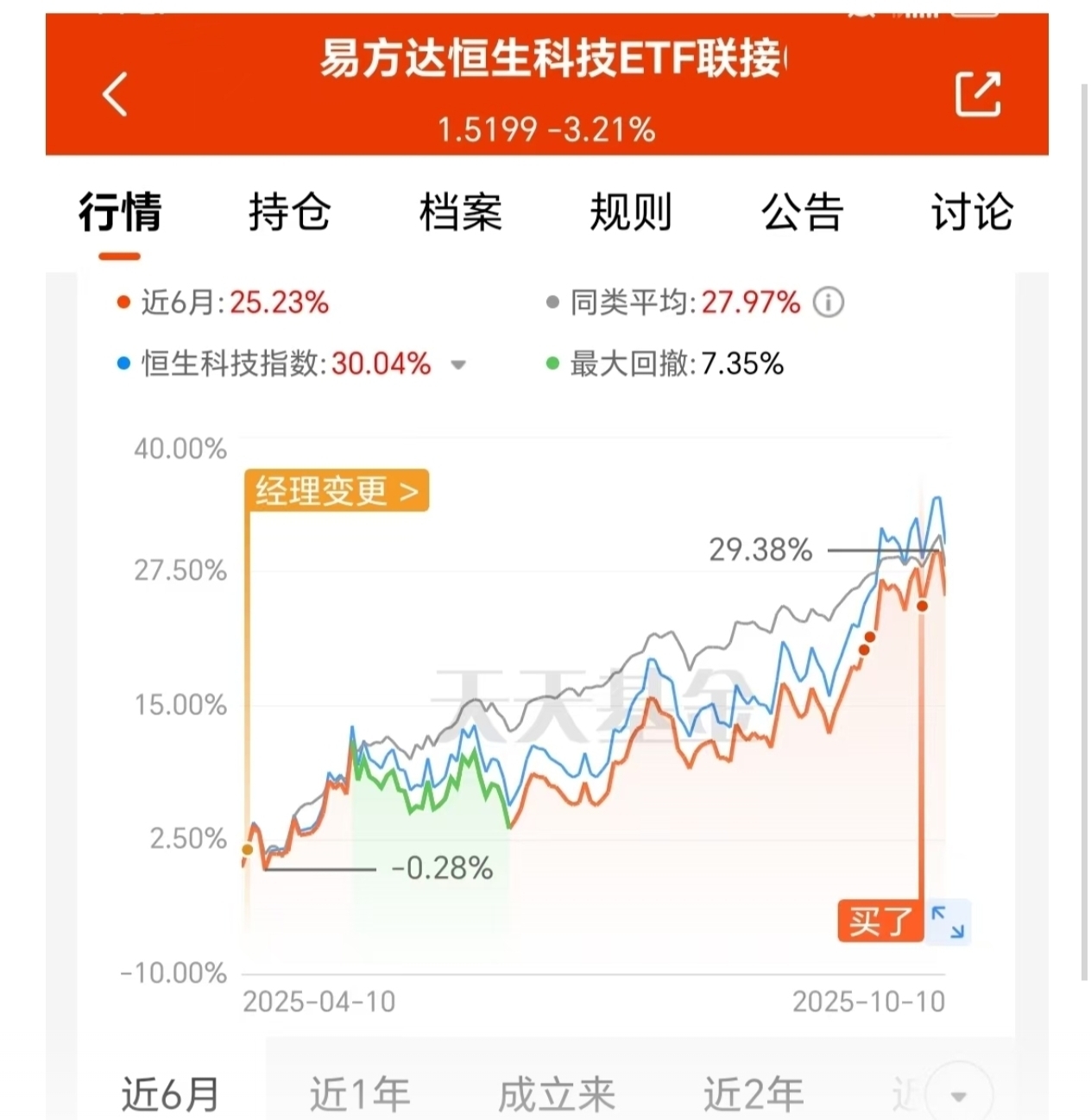 今天A股和港股受外围影响都低开了,不过我觉得调整反而是布局的机会。美国10月份可能降息,到时候外资可能会回流港股。恒生科技板块现在估值比美股便宜不少,今天回调幅度比较大,我准备买点$易方达恒生科技ETF联接(QDII)C$ 。这只基金跟踪恒生科技指数,最近半年涨了25.23%,表现挺好的。我觉得港股科技股还有估值修复的空间,所以打算趁着调整加点仓。虽然短期市场波动,但长期还是看好的。