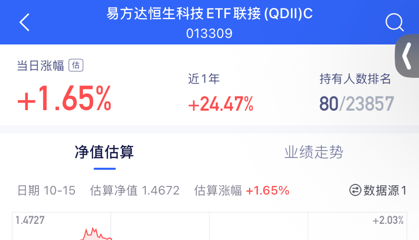 今天股市高开震荡,港股这边今天终于反弹了,其中$易方达恒生科技ETF联接(QDII)C(OTCFUND|013309)$盘中估值大涨+1.65%,从中长期看,港股科技相比A股美股仍然低,十分具备性价比,并且短期资金流入明显,完全可以逢跌抓住反弹红利的!$嘉实中证稀土产业ETF联接C(OTCFUND|011036)$$永赢科技智选混合发起C(OTCFUND|022365)$#黄金逼近4200美元!美银:明年5000##3900点得而复失!A股风格要改了?#