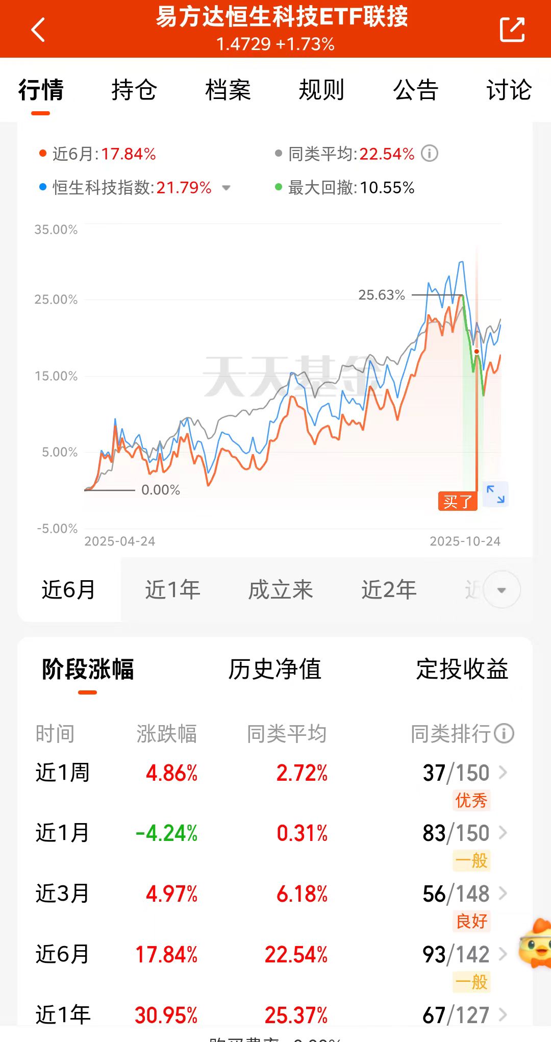 美联储降息,市场环境变得宽松,利好科技板块行情,10月马上就月底了,美联储降息再次临近,利好再次来袭,相比之下港股科技有低估值优势,流动性也更强,可以关注$易方达恒生科技ETF联接(QDII)C(OTCFUND|013309)$,港股外资回流,补涨机会来啦。