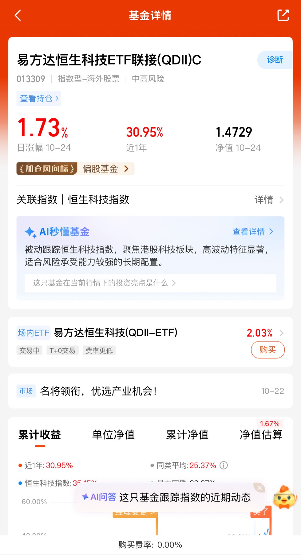 $易方达恒生科技ETF联接(QDII)C$ 作为便捷布局工具