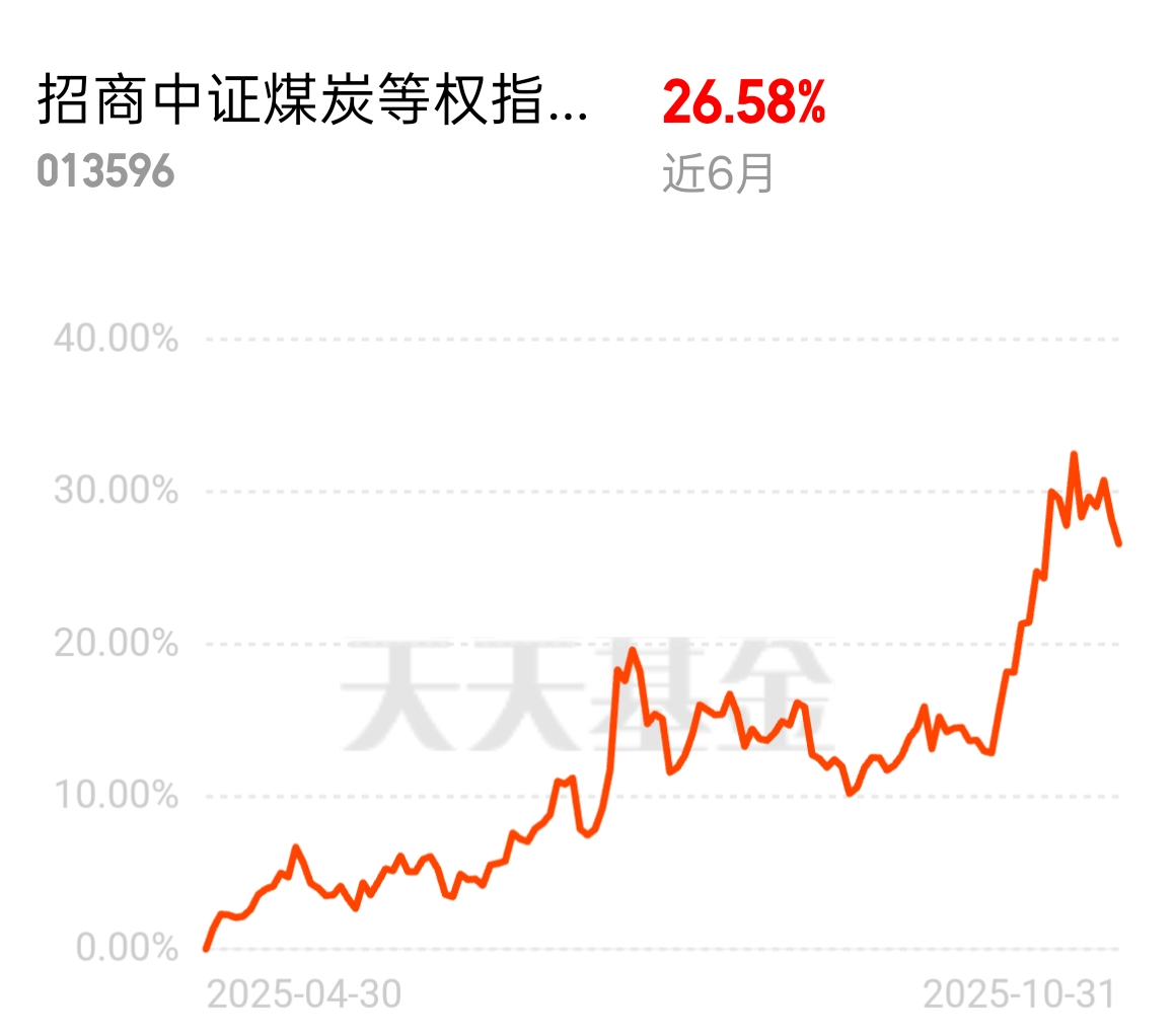 煤炭的分红再投资收益很高,长期复利很可观,四季度分红更可期。招商中证煤炭等权指数C近1年14.53%,复利收益很惊人。$招商中证煤炭等权指数(LOF)C$
