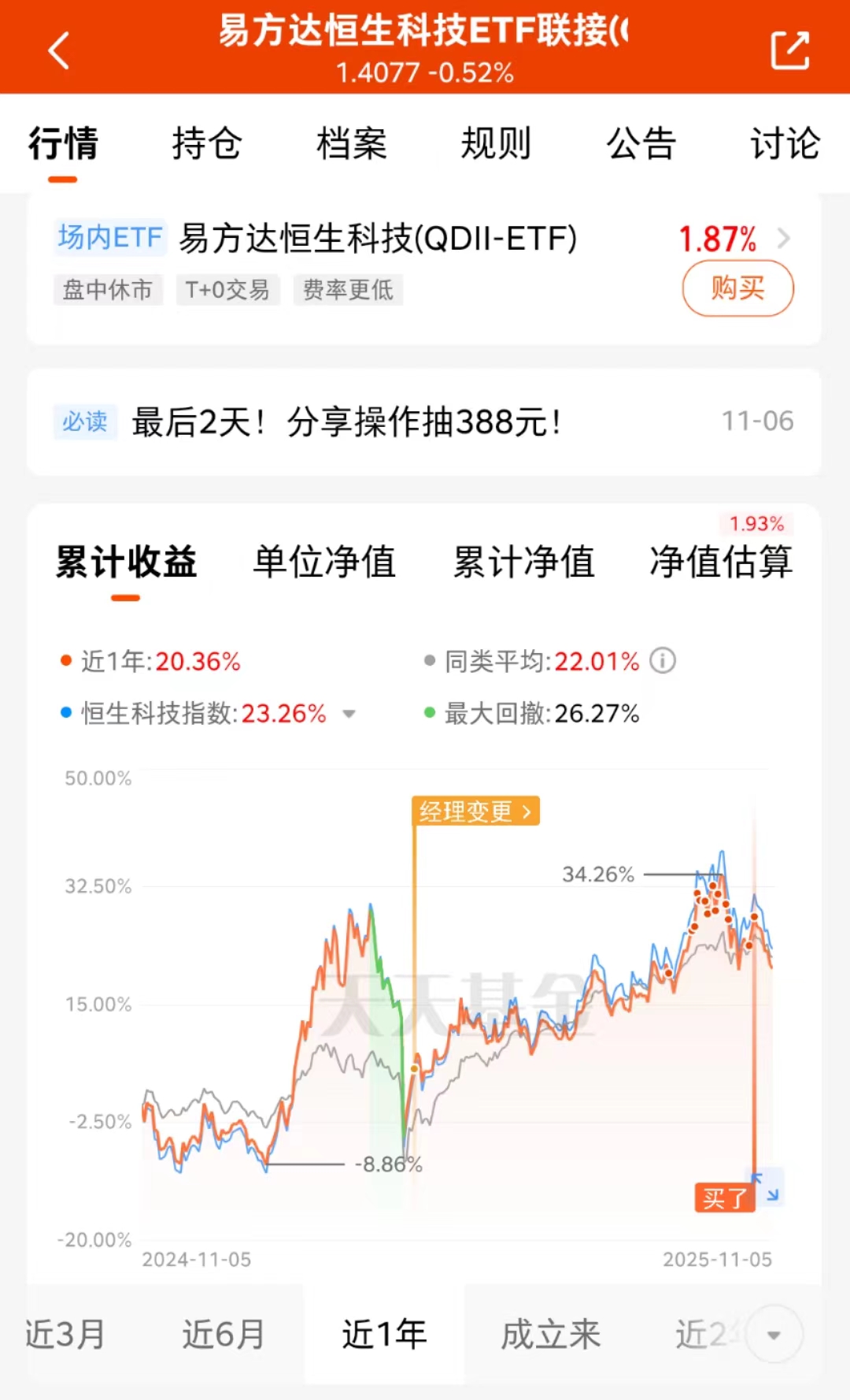 美联储降息,持续利好全球股市行情,港股科技一直滞涨一直观望,恒科跌回9月初的水平了,目前评估整体影响因素可控,且南向资金仍然再持续流入,目前这个点位的配置性价比还是比较高的,继续加仓$易方达恒生科技ETF联接(QDII)C(OTCFUND|013309)$