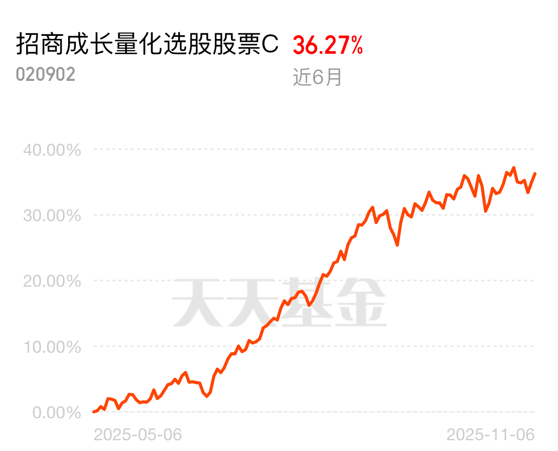 最近基金市场里业绩亮眼的量化产品不多,招商成长量化选股股票C算一个,近6个月涨3