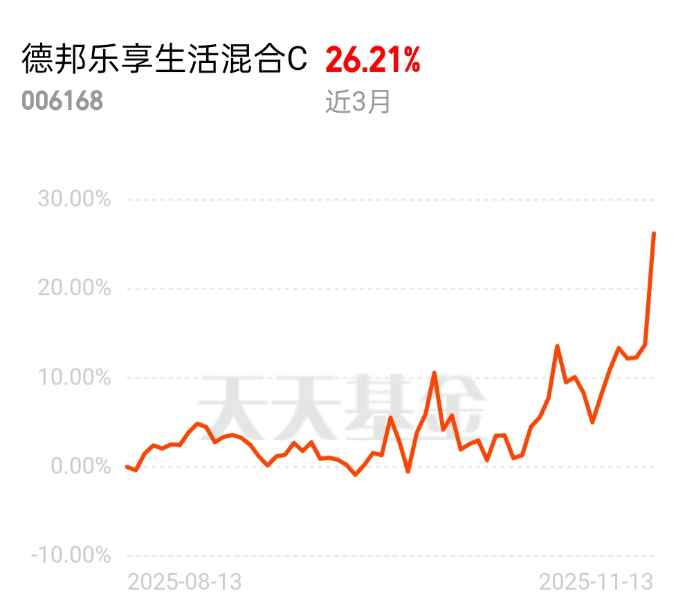 最近市场忽好忽坏,很多人买基金没了方向。德邦乐享生活混合C很给力,近3个月涨了26.21%,昨天大涨后今天逆市仍上涨,这样的好基太难的,我可不想错过,赶紧上车!
