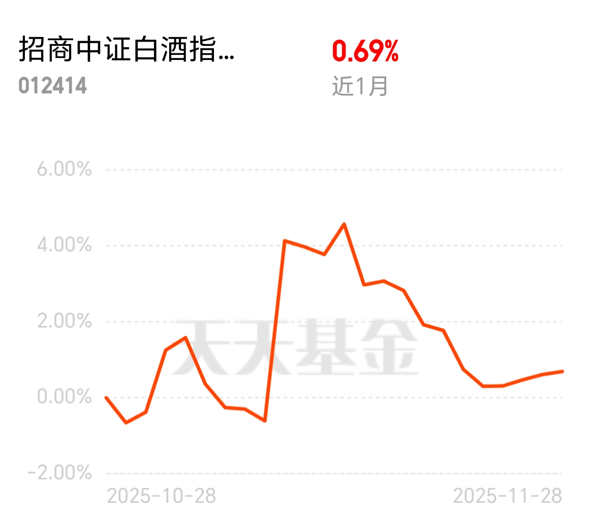 $招商中证白酒指数(LOF)C$ 近 1 个月收益 0.69%,分批定投摊成本,等着消费回暖喝汤。