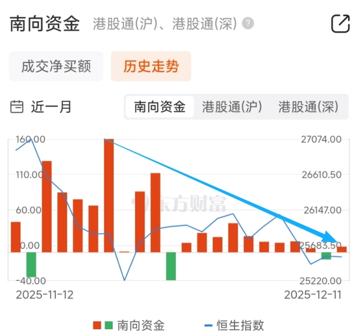 南下资金也顶不住了,近期持续缩量,按照这个情况,恒科短期还要震。