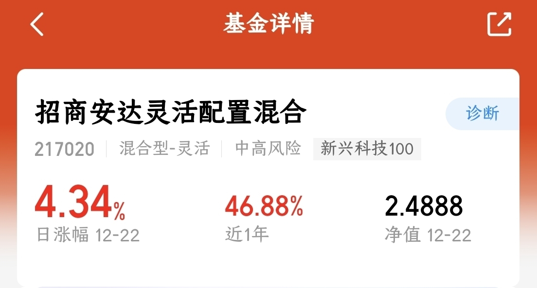 昨天A股市场高开高走,三大指数全线收涨,CPO赛道表现尤为活跃,板块个股多数上扬。其中,$招商安达灵活配置混合$ 基金单日涨幅达4.34%,近六个月累计涨幅超过68%。该基主投CPO行业,金持仓策略稳健,布局得当。