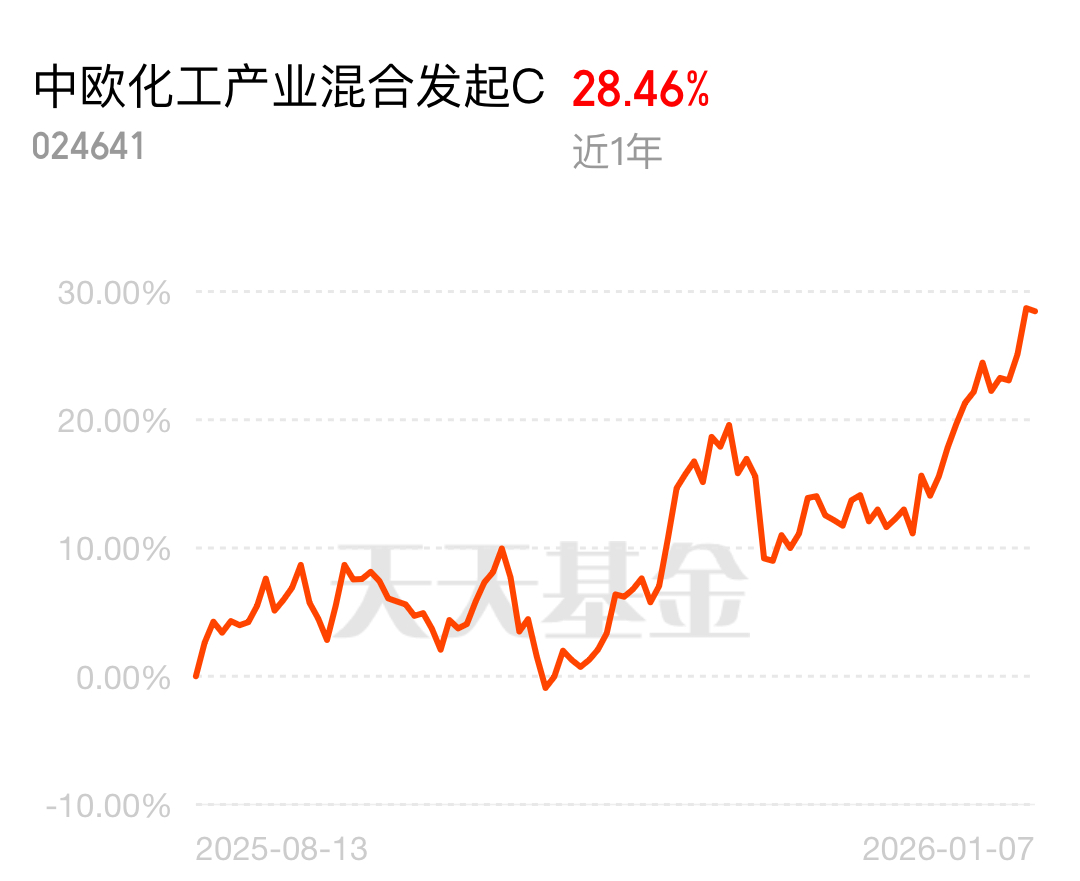 近期化工 ETF 连续 4 天吸金超 11 亿,板块热度直线涨!中欧化工产业混合发起 C 是少见的纯粹化工主动基金,经理紧盯趋势,重仓上游资源和高景气材料,近 1 月涨 12.96%,涨价周期里赚钱机会更实在。