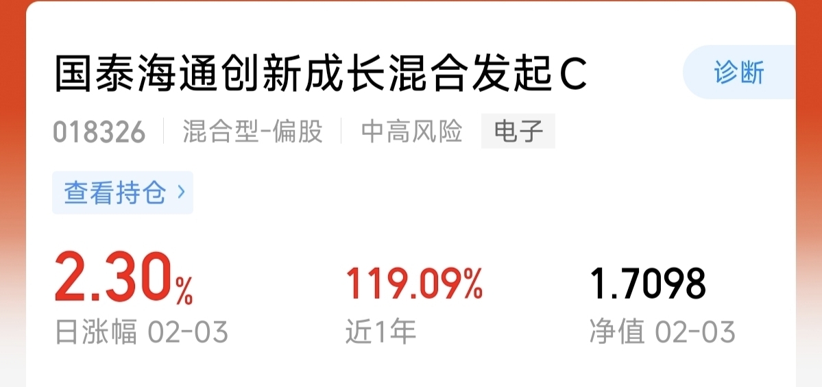 这个行情,不太好动呀,还是留在半导体吧,国泰海通创新成长近1年有119%,还是主