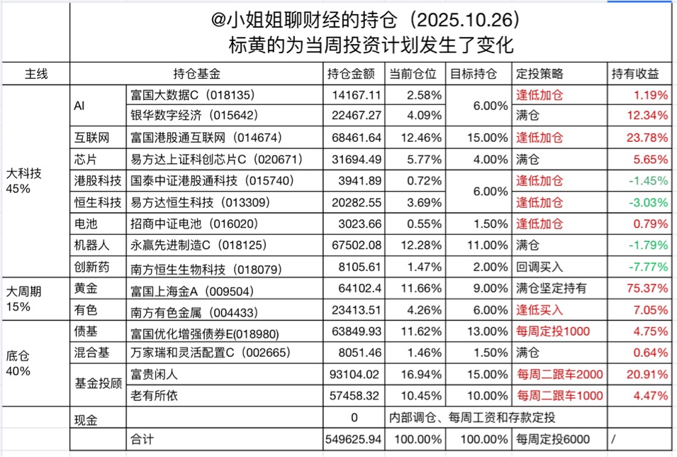 今天逢低加仓1000元富国科创创业50指数(013314),$富国中证科创创业50ETF联接C$ 这是一只涵盖科创板和创业板50只龙头股的指数,核心持仓有宁德时代、易中天、寒武纪、中芯国际、阳光电源等,全是这轮科技的领头羊,今天跌幅较大,本周刚建仓,逢低再加一笔。宽基指数我是用来获取市场的平均收益的,在配置行业基增厚收益,虽然今天科技跌了,但坚定科技牛的信心不动摇。