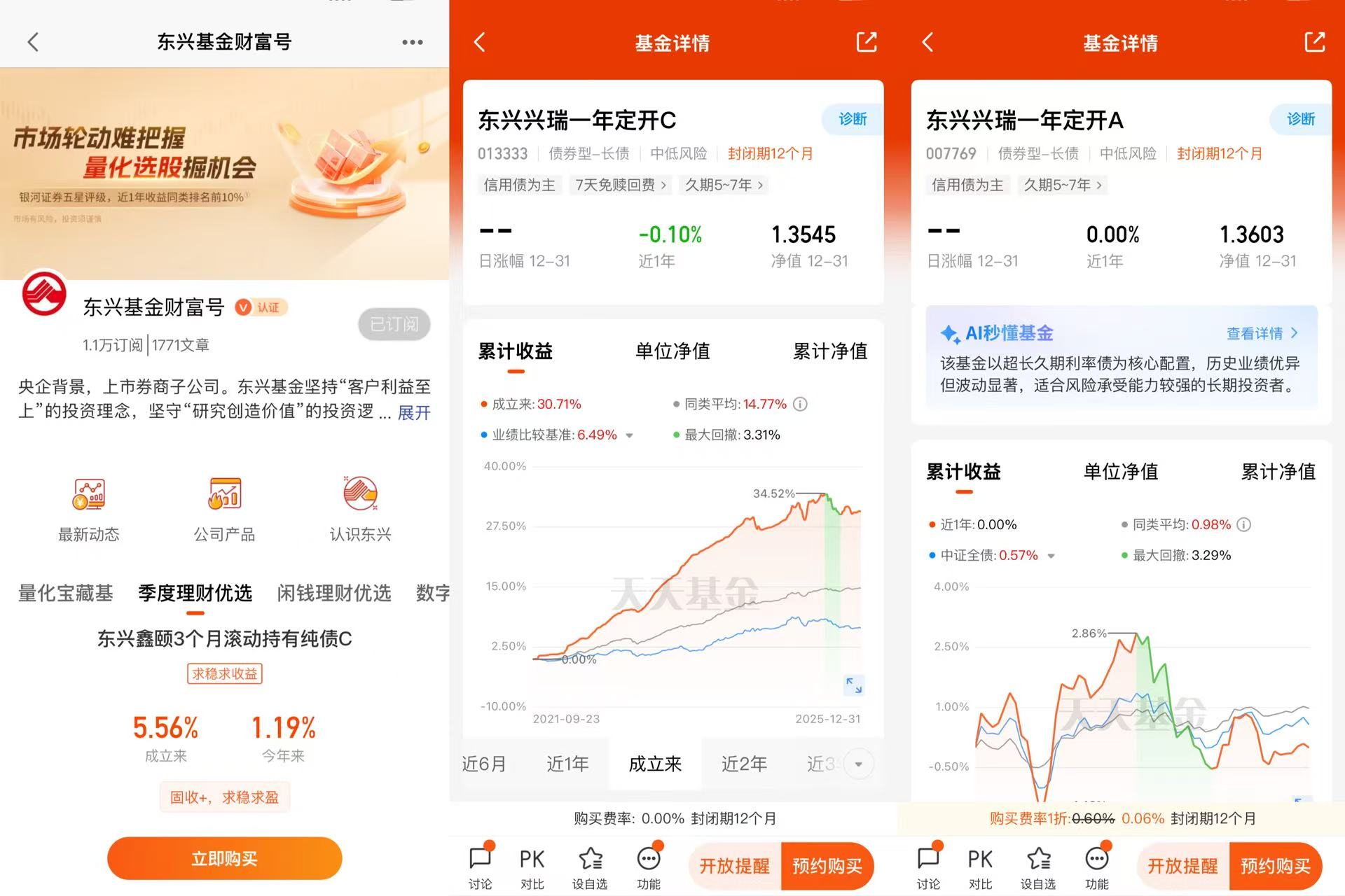我关注$东兴兴瑞一年定开C(OTCFUND|013333)$在利率下行的背景下,包括银行存款在内的传统理财方式已几乎无法实现资产保值增值的目标。此时,纯债型基金或将成为越来越多中低风险偏好投资者的选择。在债券基金中,还有一种特殊的存在——持有期债基。