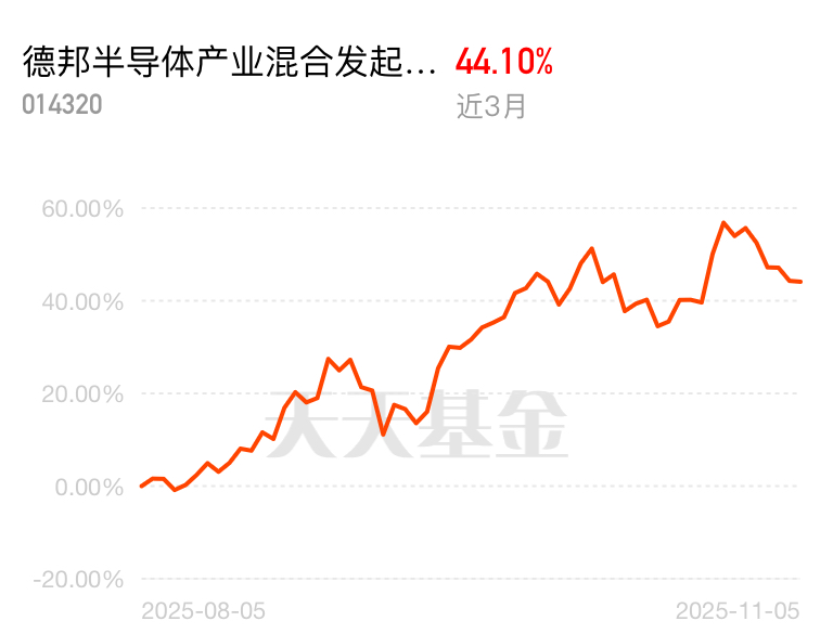 海外技术封锁倒逼国产半导体升级,存储领域国产化率快速提升,德邦半导体产业混合C抓住这一机遇,近3个月收获44.10%的涨幅,持仓转向存储后势头很猛,继续涨没悬念。$德邦半导体产业混合发起式C$ $东方人工智能主题混合C$