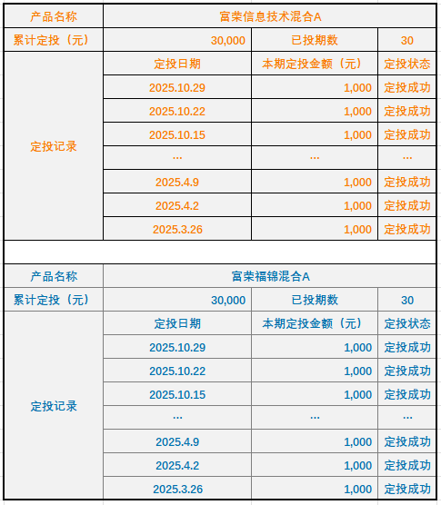 大家好!我是富荣信息技术混合、富荣福锦混合的基金经理李延峥。我于10月29日定投买入富荣信息技术混合A、富荣福锦混合A两只产品各1000元。
