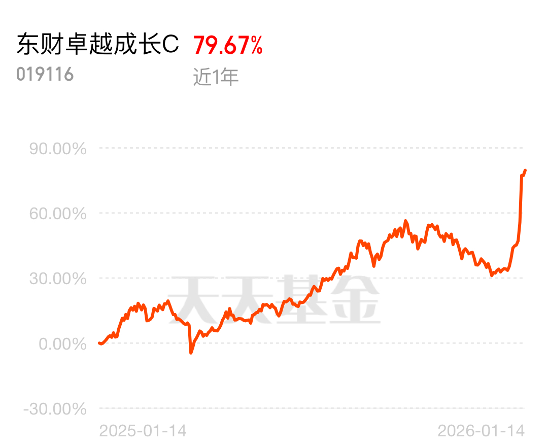 AI 应用板块今日小幅调整,属于上涨途中的正常休整,加仓机会别错过,东$东财卓越成长C$ 开年涨 29% 同类第一,近 1 年 79.67%,满仓 AI 应用,规模适中超额收益高
