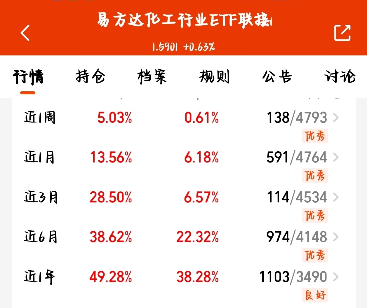 近期化工行业迎主升浪,新能源化工材料大涨,周期品也开启涨价潮,布局就选易方达化工行业C!一键打包三桶油、万华化学等化工龙头,攻守兼备,费率还超低,化工行业迎主升浪,新能源化工材料大涨,周期品也开启涨价潮,布局就选$易方达化工行业ETF联接C$ !一键打包三桶油、万华化学等化工龙头,攻守兼备,费率还超低,无申购费成本更优,精准踩中化工涨价和高股息红利,小资金也能轻松把握行业复苏大行情