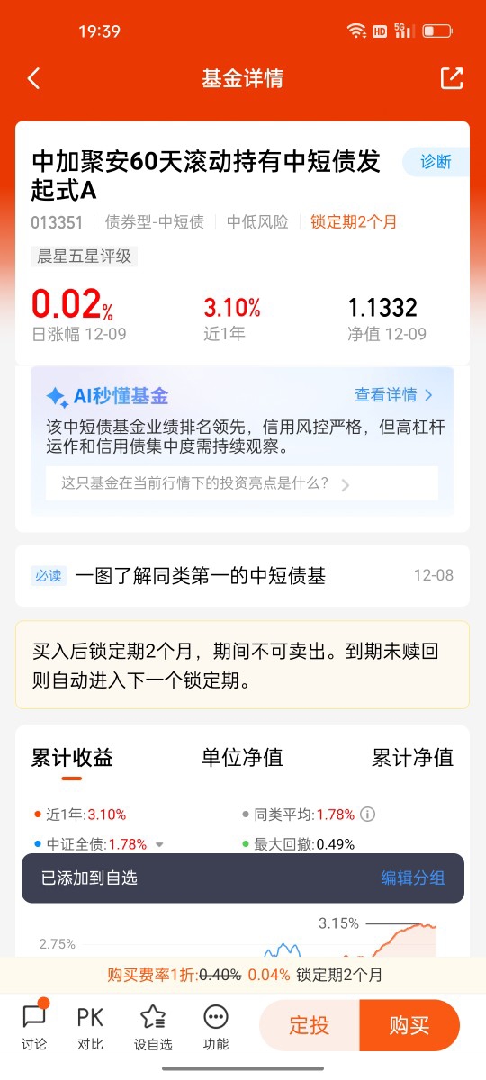 第一层:压舱石——$中加聚安60天滚动持有中短债发起式A$,推荐占比50%