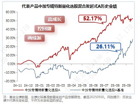 它的优势特别突出:一方面是量化选股策略,比人工选股更精准,能快速捕捉小盘股的量价变化和基本面优化机会;另一方面基金经理会做回撤控制,通过分散投资、量价因子监测等方式降低风险,它的A类份额成立至今净值增长率达52.17%,远超基准的26.11%,超额收益很明显。