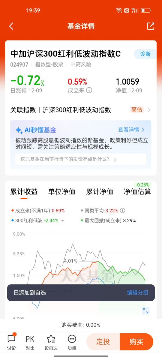 防守做好了,得有能赚稳健收益的"避风港",这只红利低波动基金就是绝佳选择。年末大家都怕踩雷,高股息的股票往往没人卖,波动特别小,而这只基金还加了"低波动"滤镜,相当于双重保险。