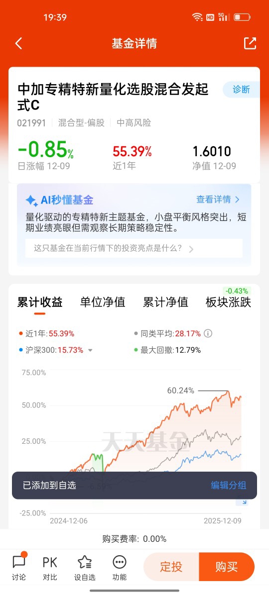 第三层:冲锋号——$中加专精特新量化选股混合发起式C$ ,推荐占比20%