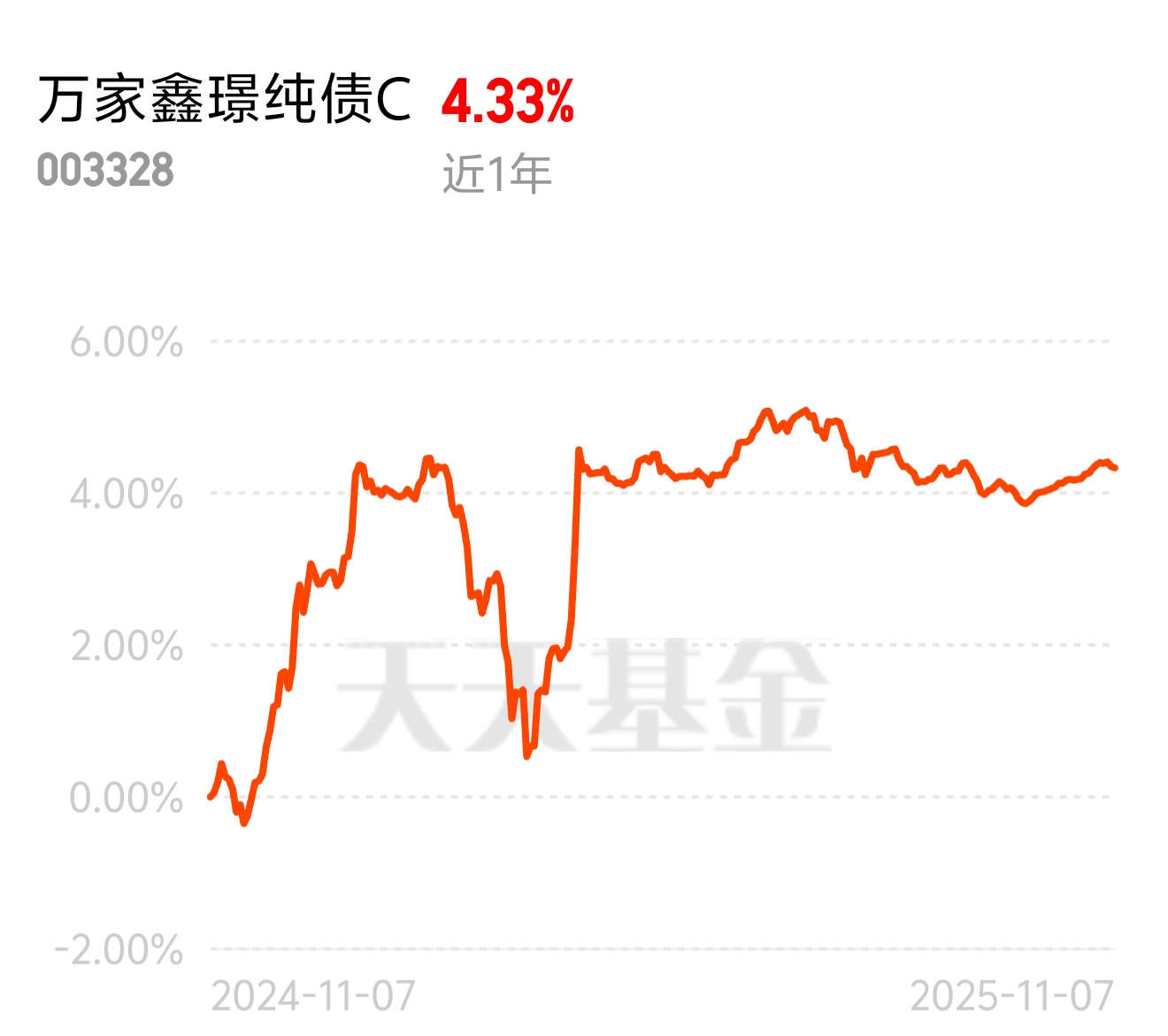 万家鑫璟债券只投债券,不受股市波动影响,走势稳定,持有体验不错。