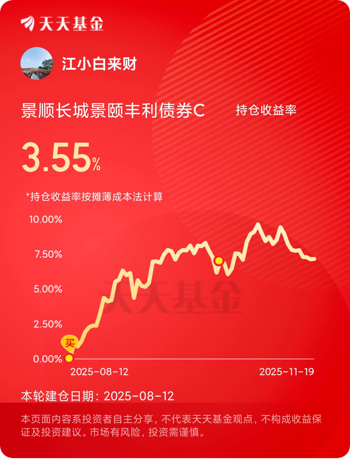 昨天居然碎了21个蛋,从上周五连跌到现在,真的有点遭不住了!幸好前段时间买了景顺长城丰利这只,早上出的英伟达三季报超预期的新闻,感觉现在带点科技的混债会更有行情一些,整体还是多赚了不少。虽然有时碎蛋也很痛心,但至少跟得上市场节奏。$景顺长城景颐丰利债券C$ #晒收益#