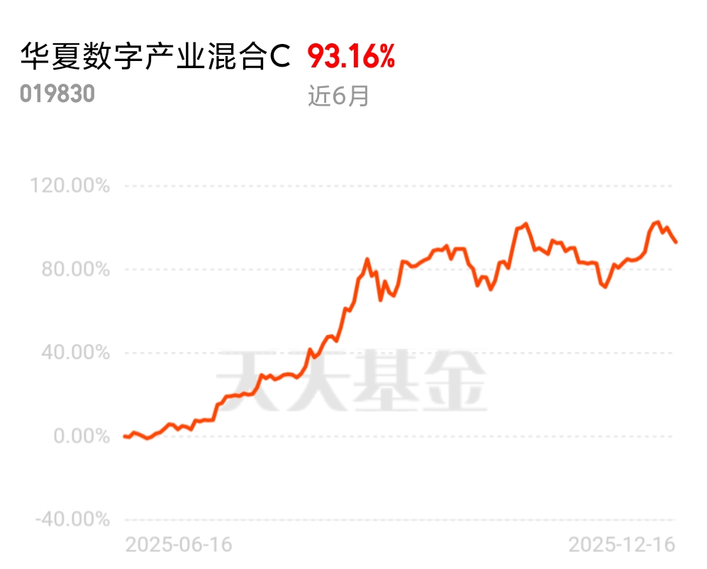 数字产业近期风口正盛,这基近6个月收益93%+,$华夏数字产业混合C$布局阿里、中际旭创这些大佬,今天开盘即涨期待收益