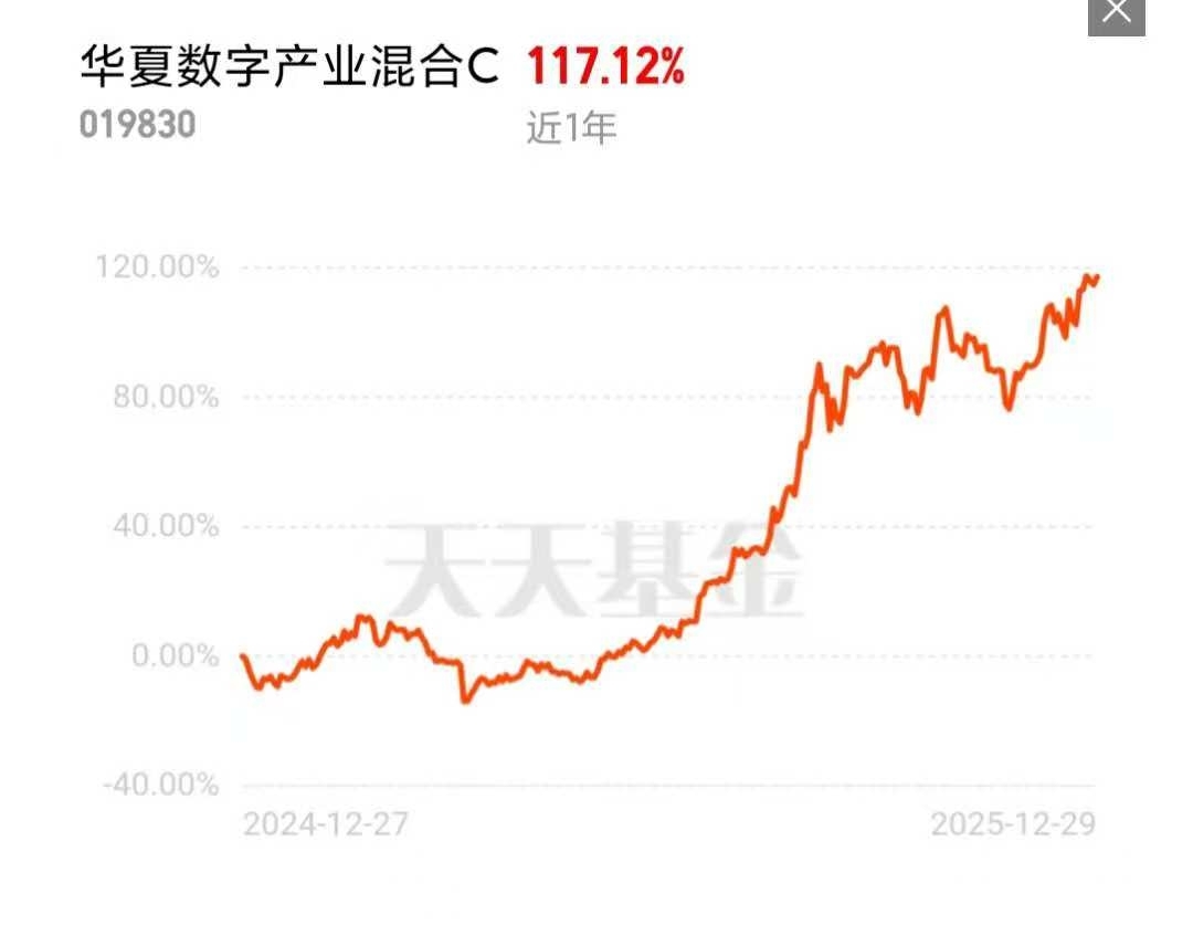 近一年收益117%,昨天收益1.09%算是逆势反弹啊,布局重仓AI算力,行业集中+个股集中的策略,弹性足,半年就能业绩翻倍的基,增收避险都是很强的$华夏数字产业混合C$