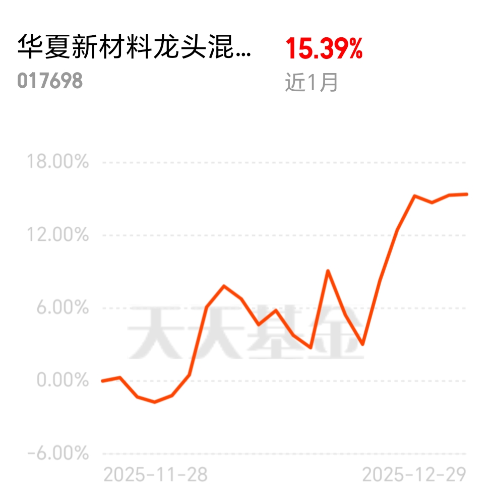 这基近6天中5天正收益,今天调整也有外围因素的干扰了,不过近一个月收益超15%,短期爆发力还是可以的,重仓的AI新材料弹性足,反弹起来也快,借调整期间持仓过节了$华夏新材料龙头混合发起式C$