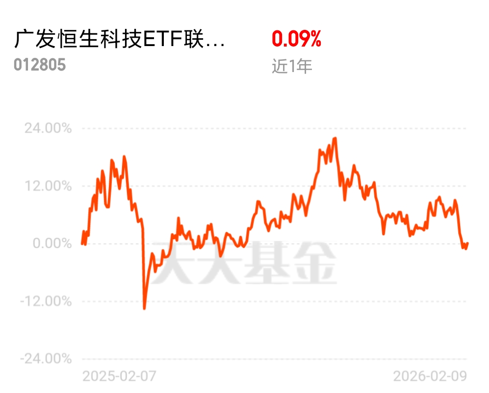 这波反弹有点意思,科技股成了急先锋。这两天美团、百度表现都不赖,基本面逻辑没变,就是流动性冲击后的修复。我之前的广发恒生科技C已经开始上涨了,节前最后一周通常有惊喜,打算继续拿住,看看春节期间港股能不能给个大红包。$广发恒生科技ETF联接(QDII)C$