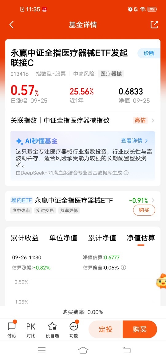 $永赢中证全指医疗器械ETF发起联接C$提前埋伏起来,看好节后趋势,昨天涨幅0.
