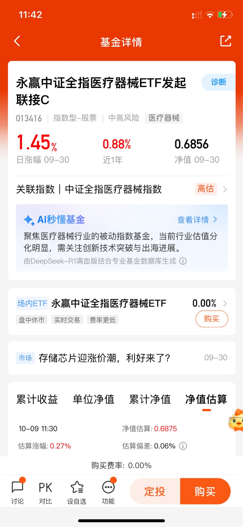 $永赢中证全指医疗器械ETF发起联接C$ 节前五天四涨,状态还真是不错呀!永赢医疗器械是聚焦医疗器械行业的被动指数基金,医疗器械的中高端品类具备较强的科技与创新属性,目前估值仍处于低位,看目前走势,有些回暖向上,我也来关注看看,节后的表现了!加油!#聊聊你的国庆假期计划#