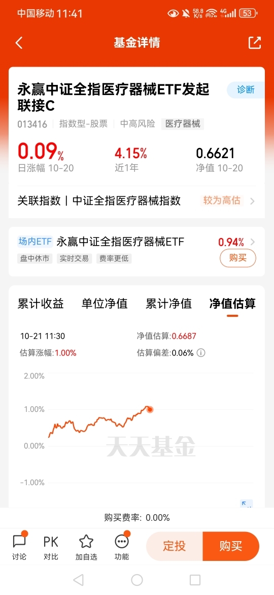 $永赢中证全指医疗器械ETF发起联接C$规模最大,弹性也最好!昨日上涨+0.09