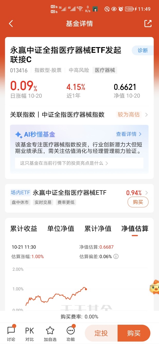 最近四天三涨,$永赢中证全指医疗器械ETF发起联接C$跟踪中证全指医疗器械指数,