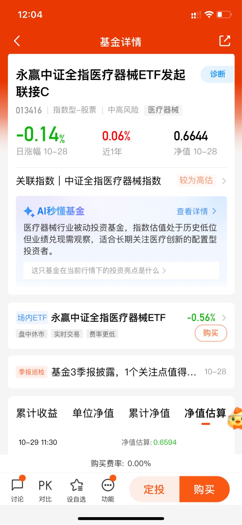 $永赢中证全指医疗器械ETF发起联接C$ 是医疗器械行业被动投资基金,是全市场首支跟踪医疗器械指数的链接基金,这里规模最大,涨势回来弹性也是极强,目前科技龙头企业已纷纷布局医疗领域,AI+医疗正处在快速发展期,趁着估值仍处于低位,倒是值得期待了!#基金经理开实盘啦#