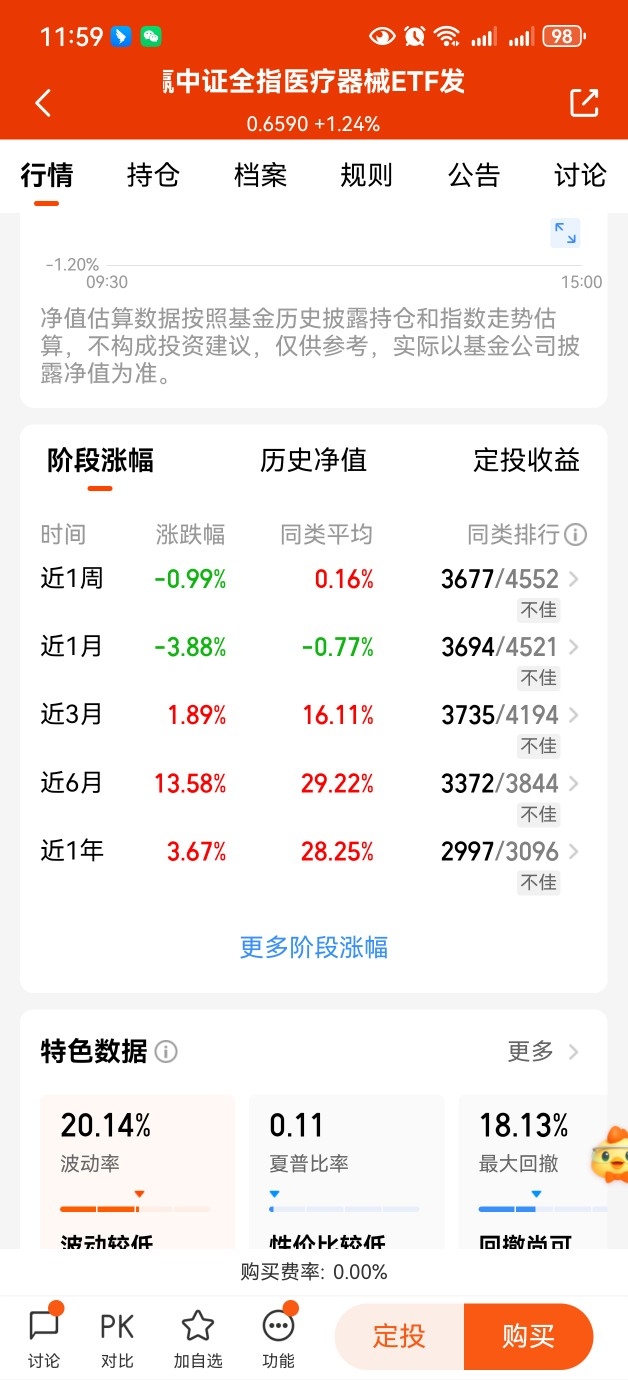 目前医疗板块处在几年来的相对底部,性价比非常高,最近看中了$永赢中证全指医疗器械ETF发起联接C$ , 是全市场首支规模最大流动性也最好的医疗器械基金,近六个月涨幅+13.80%,放长眼光来看弹性还不错呢!趁着现在性价比高,可以分批布局了,大家觉得呢?#飞天茅台批发价跌破1700!酒价何时触底?#