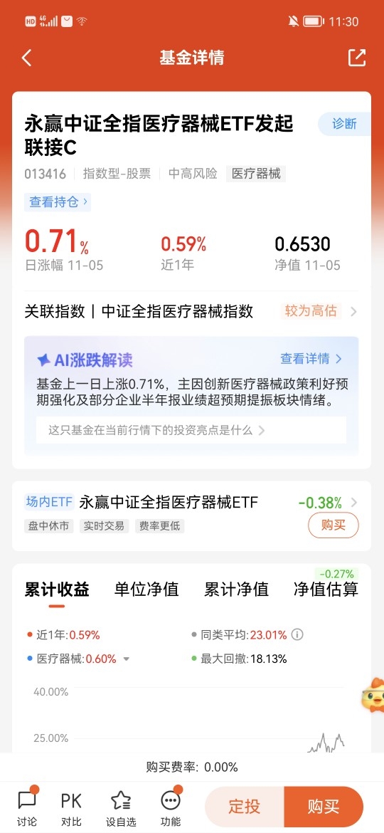 $永赢中证全指医疗器械ETF发起联接C$ 紧密跟踪中证全指医疗器械指数,深度契合当前医药行业的投资主线,能有效锁定医疗器械领域的主线行情。昨天上涨0.71%,近六个月12.55%的涨幅。经过前期的调整,医疗器械迎来低位布局良机,我准备闲钱继续加,有一起的嘛?#科技热点摊开业啦#
