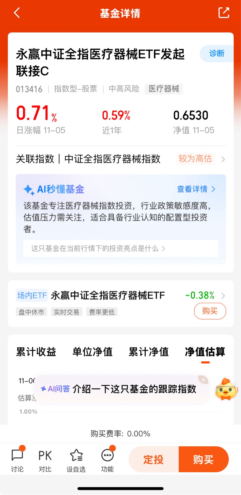 #大消费板块逆市拉升!行情能否持续?# 国家推动设备更新、创新器械审批加速、医保支付改革等政策,为行业提供增量市场和政策红利。$永赢中证全指医疗器械ETF发起联接C$ 昨天上涨0.71%,近六个月收益12.55%;该基金紧密跟踪中证全指医疗器械指数,覆盖医疗设备、高值耗材、体外诊断、医美等细分领域,一键布局全产业链,避免个股选择风险。老龄化加剧、慢性病患病率上升,推动骨科、心血管、康复等领域的医疗器械需求持续释放。