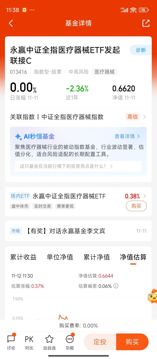 #科技热点摊开业啦# 今天医疗板块,全面拉涨态势来了,$永赢中证全指医疗器械ETF发起联接C$ 聚焦医疗器械行业的指数基金,近一周2.10%。近半年12.45%。整体处于低估值区域,筹码打折便宜,把握机会。全市场首只规模最大的医疗器械基金,在集采优化与国产替代下,医疗器械企业盈利有望不断的修复,AI医疗等技术不断的发展,行业将步入发展的快车道!