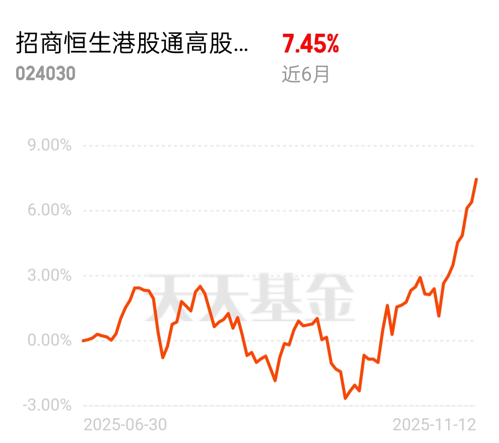 当下大家都追求稳健投资,不想冒太大风险还想有不错回报,高股息赛道正合适。招商恒生港股通高股息低波动ETF联接C近3个月收益5.08%,跟踪的指数金融地产占比超60%,6%高股息率很诱人,低波动还定期分红,低费率持有更省心。